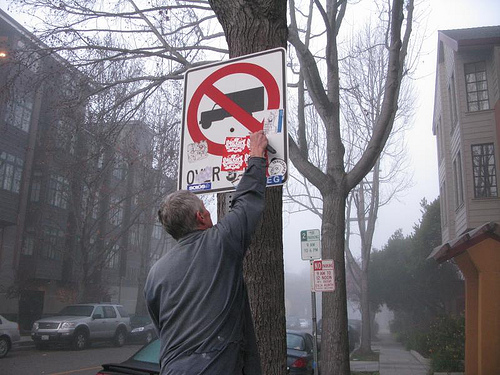 In VIGILANTE VIGILANTE, Good and producer Nate Wollman track down four men who have made it their missions to clean up their cities from graffiti in its various forms – artwork, tags, stickers, and posters – usually by painting over it. As a result, they’ve started to become condemned not only by graffiti artists whose work they destroy, but also by authorities and other critics who note that the anti-graffiti vigilantes are themselves engaging in the same behavior of their sworn nemeses. In 2008, Good noticed a particular back-and-forth battle being waged between one subject, known as “the Silver Buff” or “Buffman” (“buffing” is the term used to describe removing or painting over the street art), and graffiti artists in Berkeley and set out to get the story.