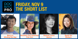 DOC NYC PRO, our 8-day conference for nonfiction professionals, organized by Deborah Rudolph and Eric Johnson. Each day features two distinct, subject-themed programming tracks of panels, doubling 2017’s offerings: