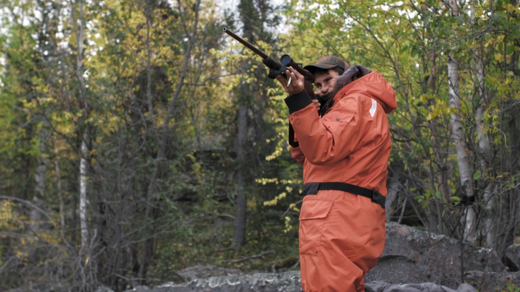Bow in hand, an old hunter roams the mountain, tracking chamois, deer, and boar, while, not far away, children build a cabin and play at scaring each other with the threat of encountering a wild animal.